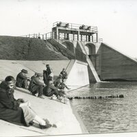 Photograph of people fishing at the Shelbyville Dam, Shelbyville, IL.