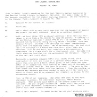 Tags: "Iron Man" Joe McGinnity, 1983, A.E. Staley Manufacturing Company, A.E. Staley Sr., Baseball, Betty Turnell, Boy Scout camp, Charlie Dressen, Chicago Bears, corn starch, cream corn starch, David Satterfield, Decatur Memorial Hospital, Decatur Staleys, DMH, fabric softener, Football, George Halas, interview, January 1983, Lake Decatur, Millikin University, OH48, oral history, recording, sound recording, soybeans, Sta-Puff laundry, Staley Bears, Staley building, Staley Company, Staley Library, Staley Pancake Syrup, staley swimming pool, Staley teams, Staley Viaduct, Staley wing, transcription, Wagner fruit drinks, YMCA