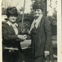 This is a photograph of two unknown older women shaking hands