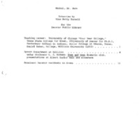 Tags: "Blues for Mr. Charlie", "The Rivals", 1980, acting, actor, actors, Albert Taylor Hall, Betty Turnell, Bill Miller, Chairman of department, Chicago IL, Classics, criticism, Dr. Jere Mickel, Episcopal Church, Ford Foundation, Four Year College, G.I. influx, Gianni Schecchi, golden anniversary, Goodman Theatre, Great Depression, Greek, Humanities, interview, Korean War, L.C. McNabb, Latin, Little Theatre Guild, low pay scale, Madame Butterfly, Masonic Temple, May 1980, Millikin University, Mr. Hutchin's Experimental College, Mr. Norville, Mrs. Edith McNabb, OH69, oral history, Pandora Players, Peru NE, Ph.D in Theatre and English, Ph.D., plays, prejudice, Professor, Professor of Speech, Radio, recording, retirement pension, Robert Maynard Hutchins, School of Theatre, show business, Sir Anthony, sound recording, speech, speech training, talking pictures, teaching, telecourse, Texas State College for Women, transcription, University of Chicago, University of Montana