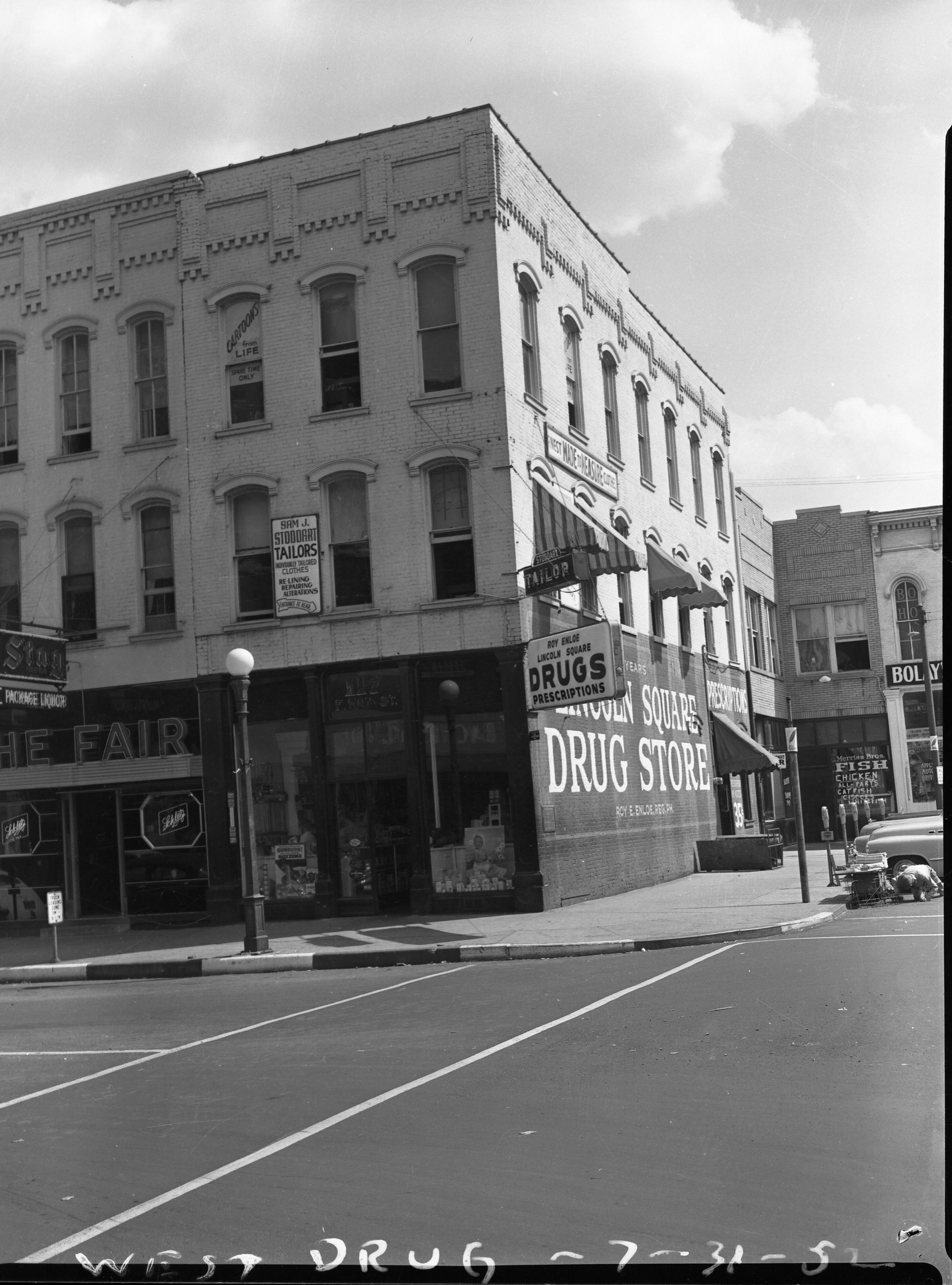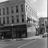 Photograph of Lincoln Square Building, West Drug Store and Transfer House Located on Main and Main.