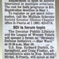 , “League of Women Voters - News Article - Multiple Sclerosis - Screening Clinic - 1989,” Decatur Public Library Local History Photo Collection, accessed October 2, 2025, http://omeka.decaturlibrary.org/items/show/9137.
