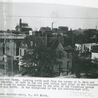 Photographs of various street scenes, 300 block N. Main St., aerial views of N. Main and North Streets, children at corner of Broadway (MLK) and Condit Streets, crowd watching 1917 World Series, and vendors and customers at Central Park Market, 1911-1913.