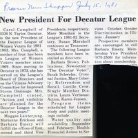 , “League of Women Voters - News Article - New League President - 1981,” Decatur Public Library Local History Photo Collection, accessed October 6, 2025, http://omeka.decaturlibrary.org/items/show/9159.