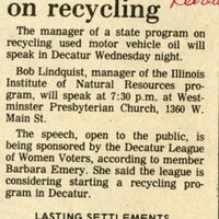 , “League of Women Voters - News Article - Recycling - State Program - 1979,” Decatur Public Library Local History Photo Collection, accessed October 10, 2025, http://omeka.decaturlibrary.org/items/show/9165.
