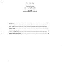 This is the transcription of John Day's oral history. He was interviewed by Betty Turnell on November 29, 1977. The interview includes his time in an English orphanage, growing up in Canada, and his work with the Wabash Railroad.