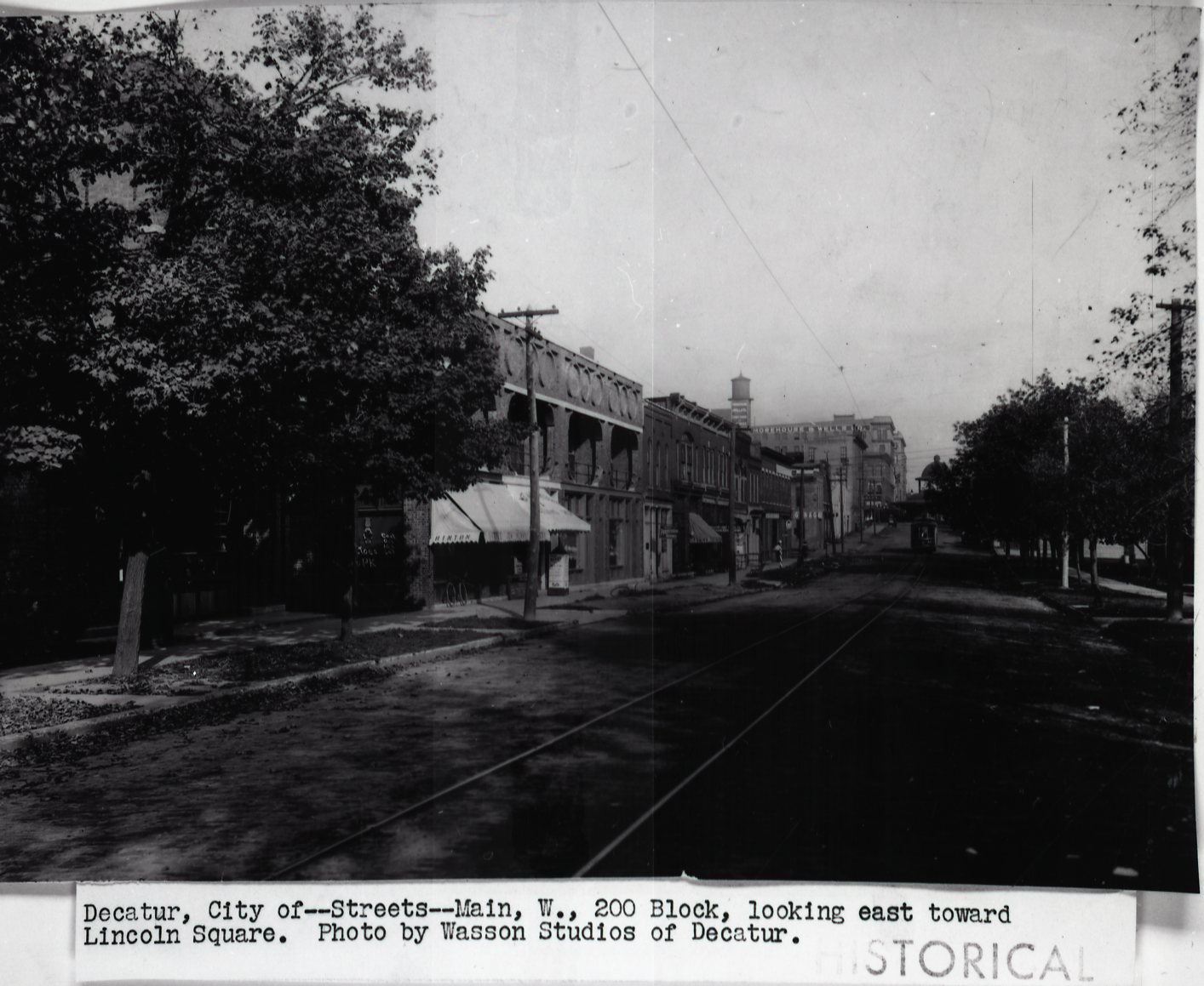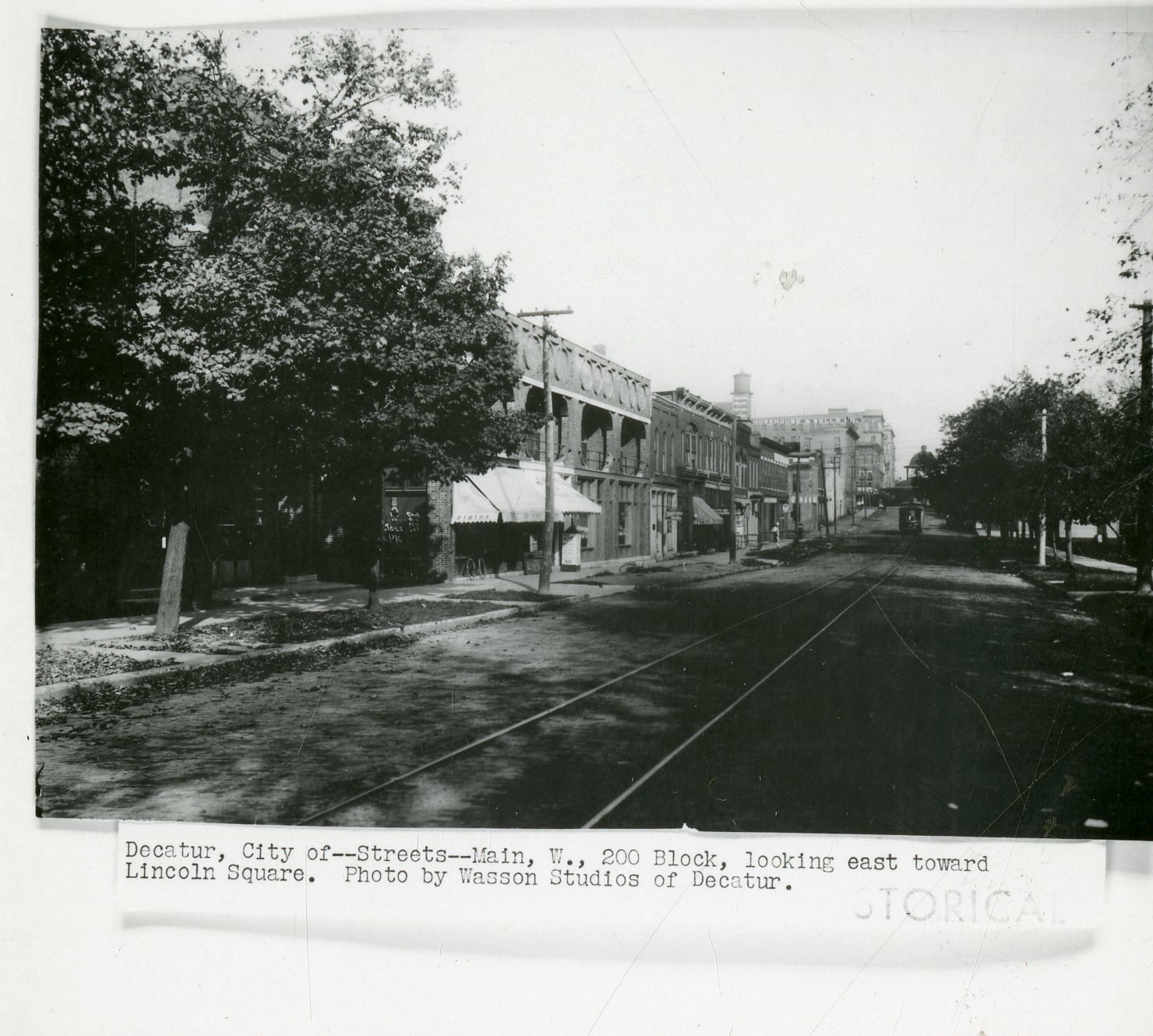 Herald and Review, Decatur, IL., “Photos of 200 Block W. Main St.,” Decatur Public Library Local History Photo Collection, accessed October 21, 2025, http://omeka.decaturlibrary.org/items/show/9232.