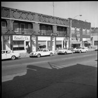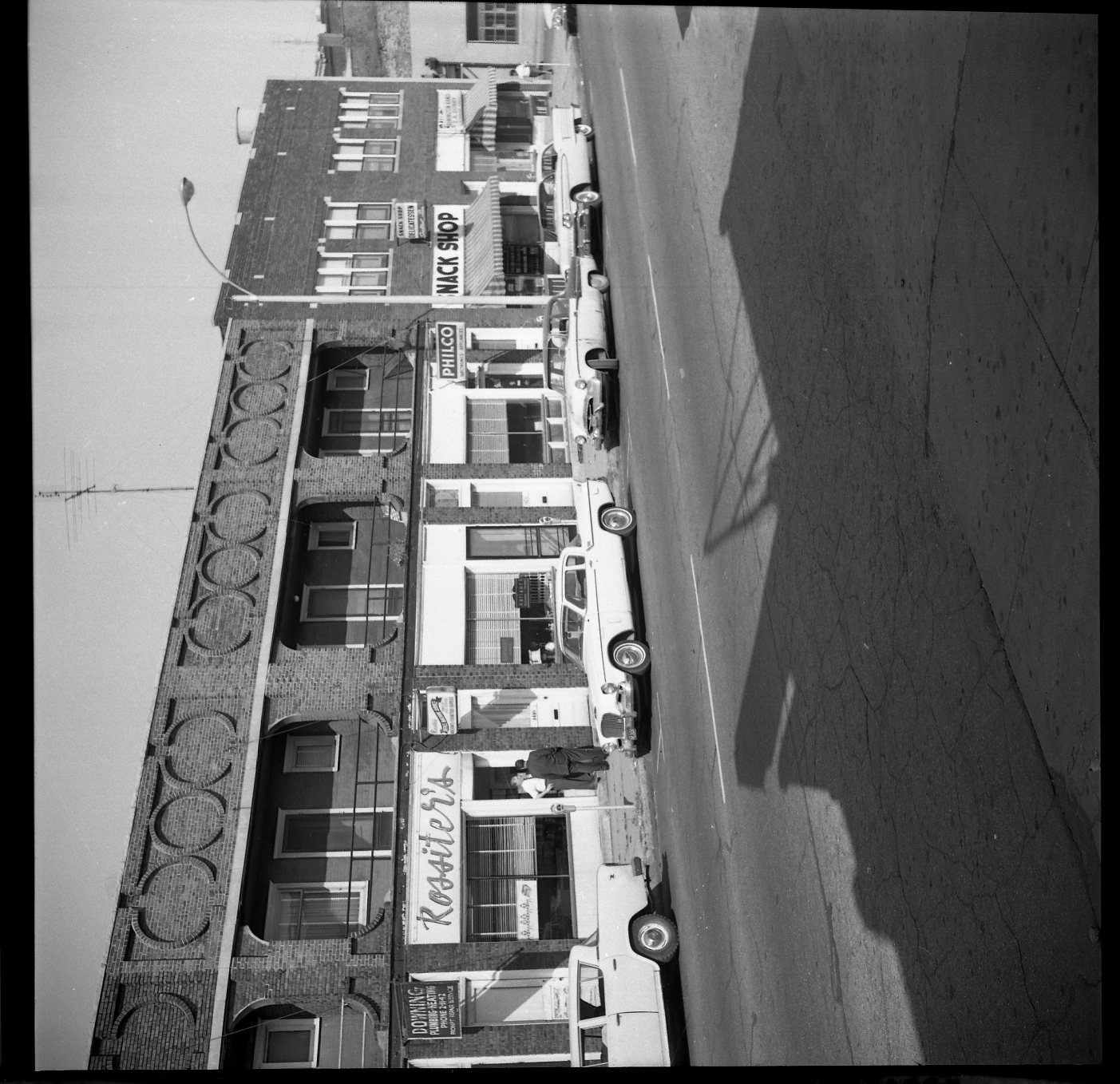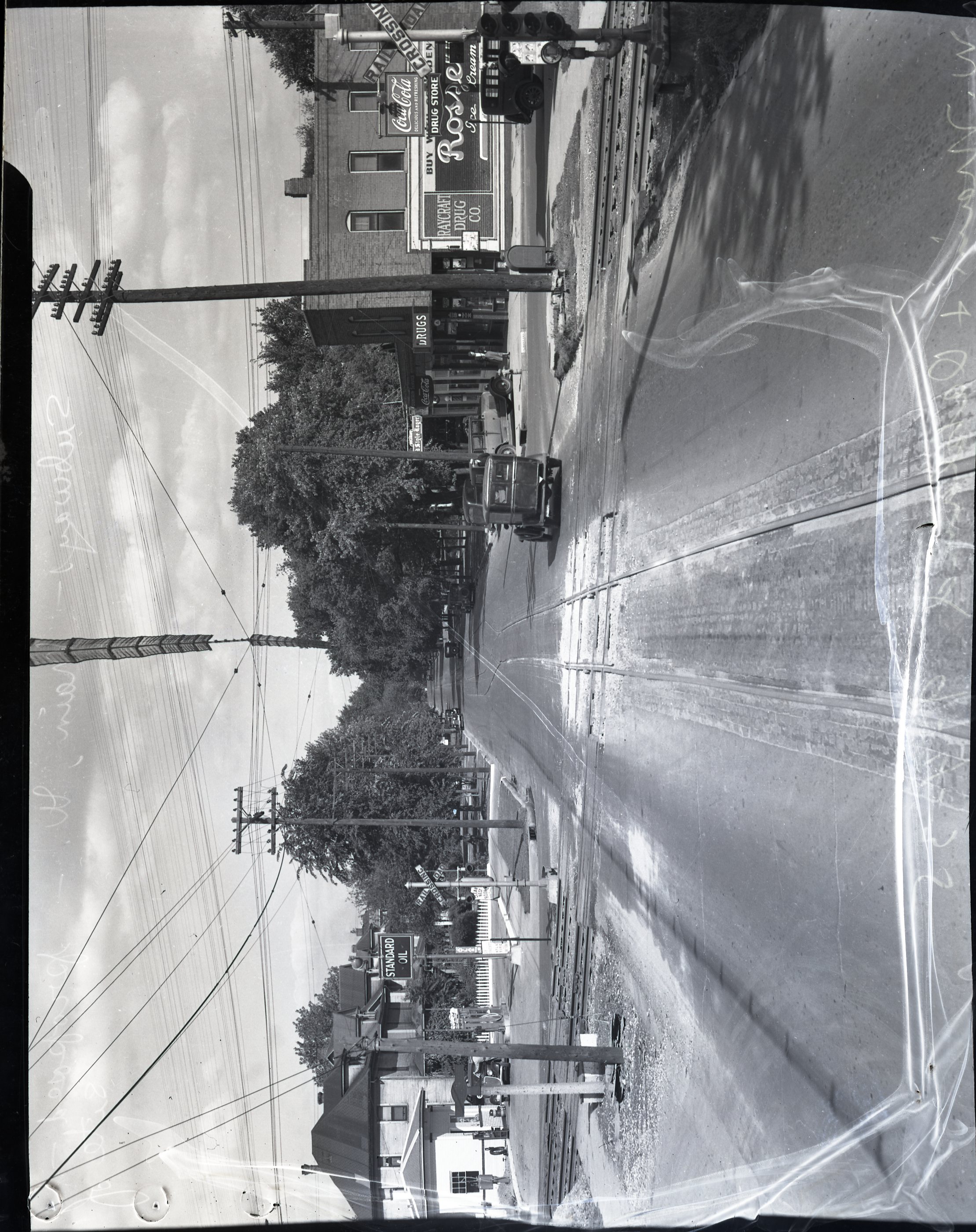 Photographs of W. Main Street 1920's. Photograph of W. Main and Oakland, 1935. Photograph of the W. Main Underpass, 1949. Photograph of the intersection of W. Main and Oakland, 1949. Photograph of W. Main St. 200 Block, with Studebaker Cars lined up, 1963.