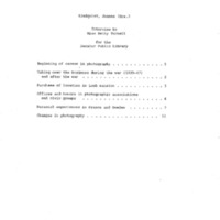 This is the transcription of Jeanne Allard Lindquist's oral history. She was interviewed on May 31, 1983 at the Jeanne Lindquist Salon of Photography by Betty Turnell. The interview covers her career in photography, the photos she took during World War II, starting her own studio in the Loeb Mansion, the offices and honors she received for her work, and her time in France and Sweden.
