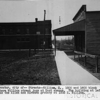Photograph: "Decatur, City of--William, E., 250. 1955 site of the Morehouse & Wells Co. Photo made as the site was being cleared for the New England Sanitary Bakery built on that site which was opened in 1910." Photograph: "Decatur, City of--Streets--William, E. 300 Block at corner of N. Franklin. This photo was made in 1908 when the northeast corner of this intersection was proposed as a site for the No. 4 fire house. 1174 E. Locust was chosen instead. In 1955 Brown's Auto Supply occupied the northeast corner of William and Franklin." Photograph : "Decatur, city of--Streets--William, E., 1500 and 1600 block where William street jogs at East Avenue. The building at left was Allen and Kirkman grocery at 1502 E. William."
