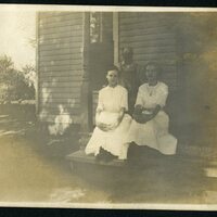 Malone Family, Collection, Photographs, Ruth Malone Family Album, Man and two Girls, Porch