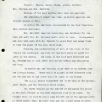 Browse Items (1 total) Tags: BM3687 Browse All Browse by Tag Search Items Sort by: Title Creator Date Added Board of Trustees - Decatur Public Library - Board Meeting - Regular Meeting - March 1923 Library Trustees board minutes monthly report March 1923 Tags: Agenda, Binding and Repairs, BM3687, board meeting, Board of Trustees, bond issue, Book Account, Circulation, Classified Report, Decatur IL, Decatur Public Library, Enlarging stacks, Finance, Librarian's Report, March 1923, Minutes, Mrs. Evans, Re-decorating library, Registration, reports