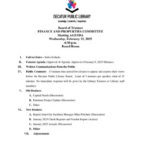 Tags: Agenda, Approval of meeting schedule 2025/2026, BM3605, Board of Trustees, budget actuals, capital needs, Check registers and vendor reports, Compensation Update, Decatur IL, Decatur Public Library, Finance and Properties Committee Meeting, Furniture Project update, Minutes, packet, reports, Rick Meyer