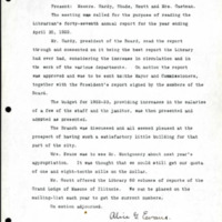 Browse Items (1 total) Tags: May 1922 Browse All Browse by Tag Search Items Sort by: Title Creator Date Added Board of Trustees - Decatur Public Library - Board Meeting - Regular Meeting - Special Meeting - May 1922 Library Trustees board minutes monthly report May 1922 Tags: Agenda, Binding and Repairs, BM3675, board meeting, Board of Trustees, Book Account, Branch dedication, branch library, budget, Circulation, Classified Report, Decatur IL, Decatur Public Library, Finance, Librarian's Report, May 1922, Minutes, Mrs. Evans, Registration, reports