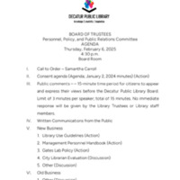 Personnel Policy and Public Relations - monthly meeting - February 2025 - agenda - minutes - reports