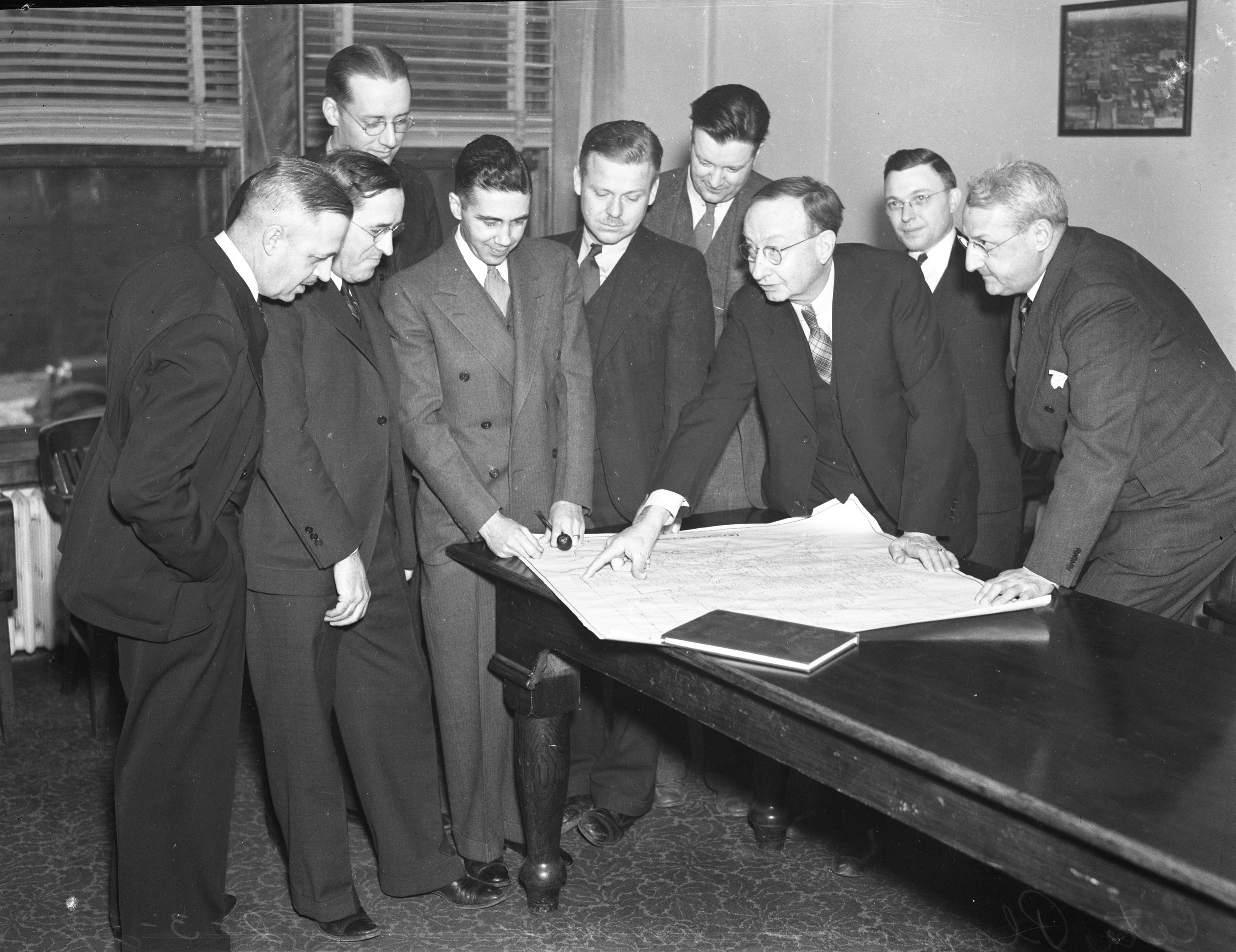 Photograph of the Decatur City Council Planning Commission, 2/3/1957. Photograph of Decatur City Council Members meeting 1/20/1958.