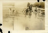 Photograph of a group of people in the Okaw River during a camping trip (1917).