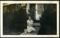 Photograph of Zella Grubbs sitting on the steps of a house in September 1932.