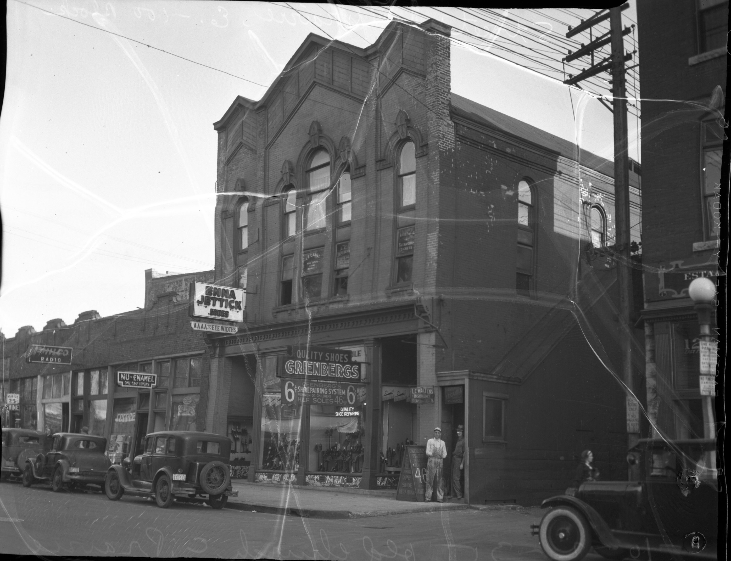 Buildings, Citizens National Bank, H. Post & Sons, Universalist Church, Greenbergs Shoes, Decatur, IL.