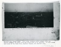 Photograph of Decatur. This aerial view, looking north between Main and Church Streets, is taken from the south side of W. Prairie. It also shows the sites of the Elks Club, Masonic Temple, and Decatur Club.