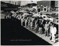 Photograph BS:364 Meadow Gold's Milk Wagon Horses dated 1955. Photograph BS:365 Meadow Gold's Famous 6 Horse Hitch, 1955. Photo BS366: Beatrice Foods, 304 S. Main St., Decatur. Photo BS367: Meadow Gold's 15 milk wagons being moved to stables at 500 Block E. Prairie St., Decatur, IL. Photo BS368: Beatrice Foods, 305 S. Main, Decatur.
