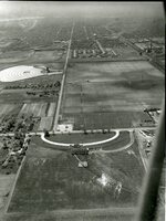 Photograph Aerial view of the Drive-in Theater, opened July 11, 1950. Includes photos of the field before construction (1948). Photographs of the front of the Drive-In Building.