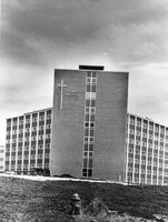 Photographs of outside views of St. Mary's Hospital taken in the 1960's and 1970's.