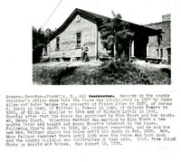 Photograph of House on 243 S. Franklin Street. "Records in the county recorder's office show that the house was constructed in 1837 by James Allen and later became the property of Wilson Allen in 1837, Jerome R. Gorin in 1846, William L. Powers in 1849, Orlando Powers in 1850, Eliza J. Moeller in 1864 and Richard Little in 1891. Shortly after that the house was purchased by Nina Ebert and her brother, Henry Ebert. Valentine Feitner was married to Nina Ebert a few months later and bought out Henry Ebert's interest in the house. Following Nina's death in 1892, Mr. Feitner remarried, and he and the new Mrs. Feitner shared the house until his death in Feb. 1928. Mrs. Mary Feitner remained there until 1938 when the house was torn down and the county building was constructed on that site. Information from clips. Photo by Herald and Review, ran 8/19/1938."