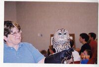 Photographs with Jacques Nuzzo and Jane Seitz of the Illinois Raptor Center--Birds of Prey Program.