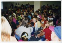 Photographs of performers and audience at the "Madcap Program" held in the Madden Auditorium, Decatur, IL.