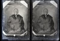 This is the glass negative of a copy of a photograph of an older lady. The photo was taken by Charles Wasson of Wasson Studios in Decatur, IL. The copy was taken in the early 1900s for Flora Evans. The original photograph was taken around 1890.