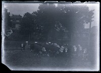 This is the glass negative of a heard of cows in a field. The photo was taken by Charles Wasson of Wasson Studios in Decatur, IL in the early 1900s.