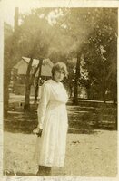 This is a photograph of a woman in a white dress c. 1920. There is no mention on the photo of a location.