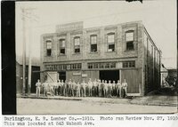 Photograph of Employees standing in front of the E. R. Darlington Lumber Co. located 543 Wabash Ave. Photo ran Review 11/27/1910.