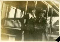 Photograph of two women on the porch. One is Mabel Grubbs. The other is unknown