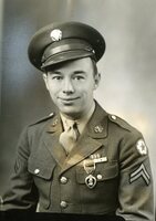 Herald and Review Library: Miller, Corp. Dale; Article on back of photo; "Corp. Dale Miller, son of Mr. and Mrs. Henry Miller, Maroa, has been spending a 30-day furlough with his parents. He has been in the Walter Reed hospital, Washing, D. C., since November to be treated for a wound received in the North African invasion. He was one of the 102 wounded who returned from Africa and were awarded Purple Hearts."