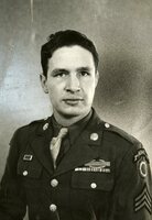 Herald and Review Library: Miller, Sgt. James F., Article on back of photo; "Awarded Badge; Sgt. James F. Miller, son of Mrs. Grace O. Miller of 1243 East Orchard street, recently was awarded the Combat Infantryman's badge for his performance of duty in ground combat against the enemy in the European theater. In service for 22 months Sergeant Miller serves a platoon sergeant and holds a Presidential Unit citation, Good Conduct medal and wears two battle stars on his campaign ribbons."