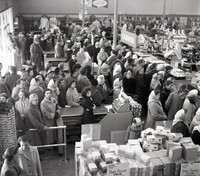 Photographs of customers standing in line at the cash register at the W. T. Grant Co. Store in Fairview Plaza.