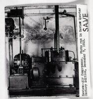 Photograph of the Review Air Compressor. Photograph of the Review Building in 1888. Photos of Review of counting room or business office. Photograph of work area. Photograph of Review elevator. Photograph of hall and stairway, 1895. Photograph of heating system and sump pump, 1913.