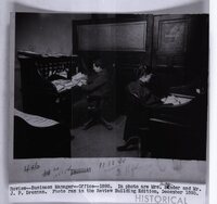 Photograph of Business Manager Office 1895. Photograph of Editor's Office 1895. Photograph Employees 1890. Photograph of General Manager's Office 1913. Photograph of Engine Room 1895 with employee. Photograph of Engraving Room 1913, with employee.