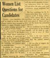 League of Women Voters - article - Women List Questions for Candidates - 1958