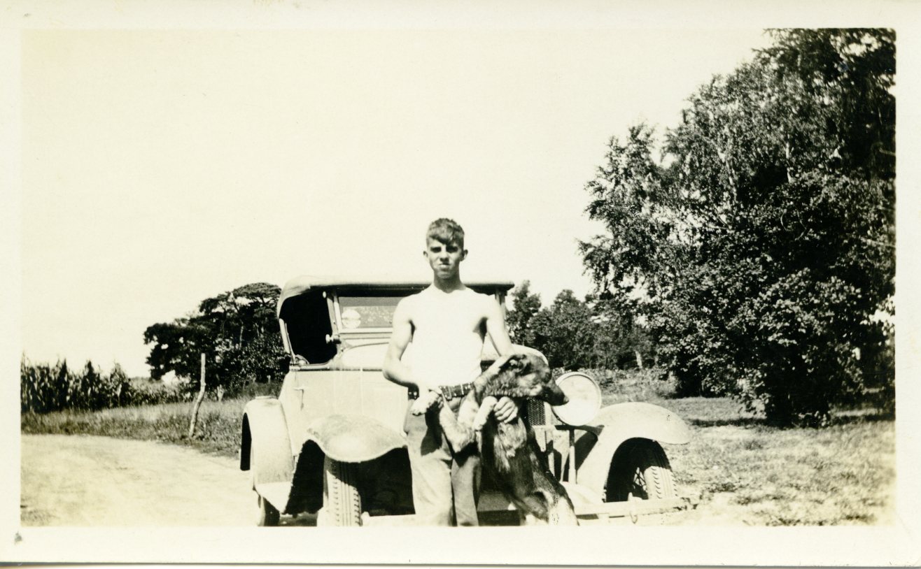 Malone Family, Collection, Photographs, Boy and Dog by a Car