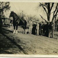 Malone Family, Collection, Photographs, Boys Looking at Clydesdale Horse