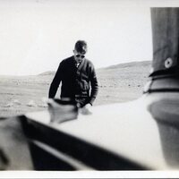 Malone Family, Collection, Photographs, Man in Desert behind Car