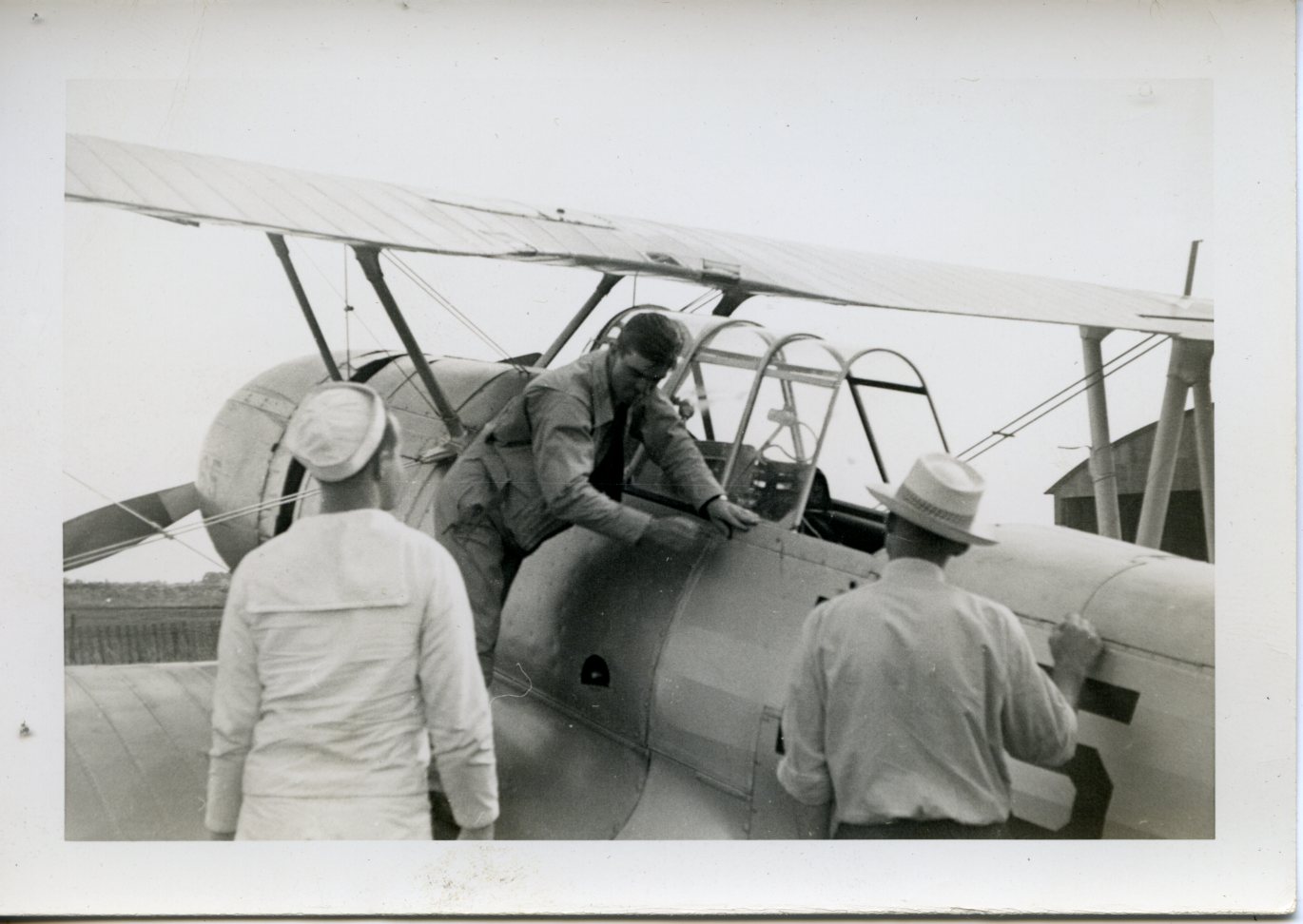 Malone Family, Collection, Photographs, George getting out of a plane at the Decatur Airport