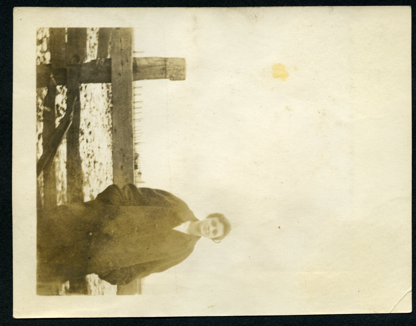 Malone Family, Collection, Photographs, Ruth Malone Family Album, Woman leaning against a Fence