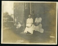 Malone Family, Collection, Photographs, Ruth Malone Family Album, Man and two Girls, Porch