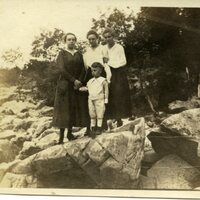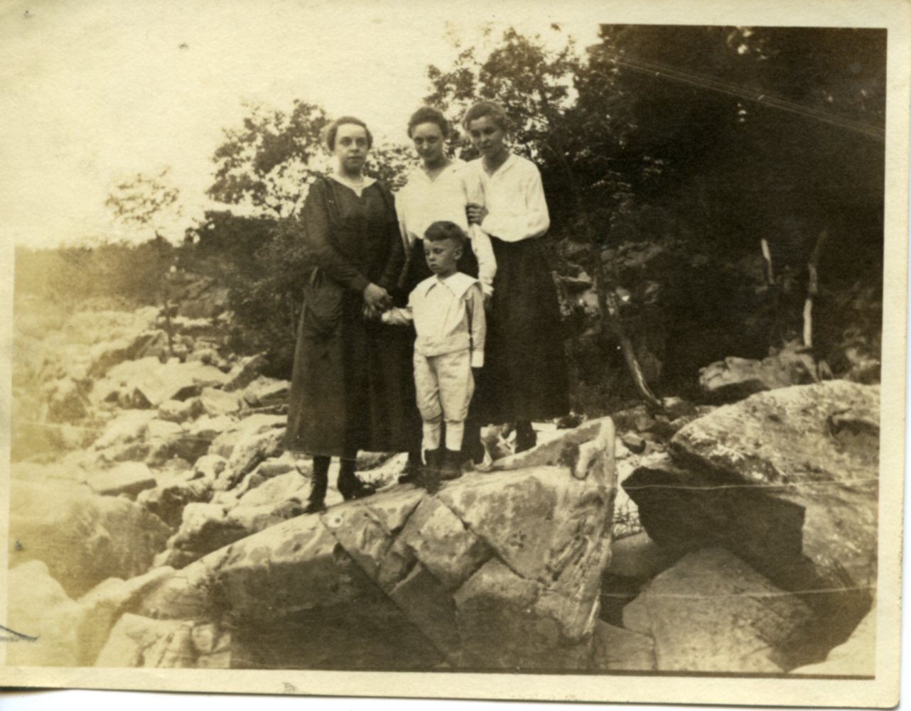 Malone Family, Collection, Photographs, Ruth Malone Family Album, Three Women and Boy on a Rock