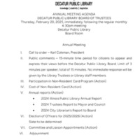 , “Board of Trustees - Annual Meeting - February 2025 - agenda - packet - minutes - reports,” Decatur Public Library Local History Photo Collection, accessed March 10, 2026, https://omeka.decaturlibrary.org/items/show/9816.