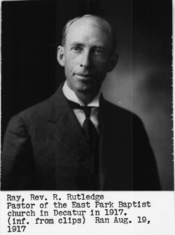 Photograph of Rev. R. Rutledge Ray, pastor of East Park Baptist church in Decatur in 1917. Ran in the Herald and Review 8/19/1917.